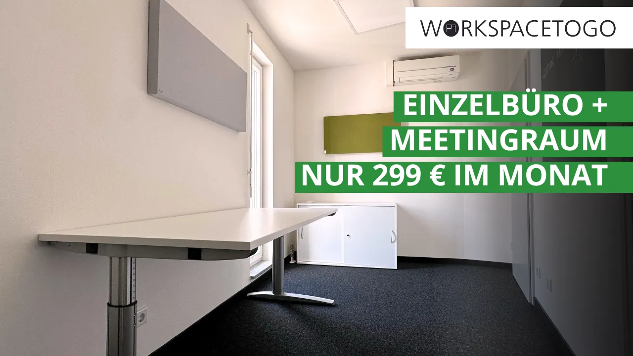 Mit unserem kompakten Einzelbüro bieten wir eine effiziente, voll ausgestattete und kostentransparente Lösung für nur 299 € netto im Monat (zzgl. Nebenkosten: 9,35 €). Inklusive sind die Vorteile einer modernen Shared-Office-Infrastruktur.